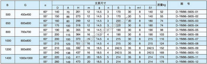 帶式輸送機(jī)寬度與落煤管配合 B=500mm 落煤管選用 450x450 B=650mm 落煤管選用 600x600 B=800mm 落煤管選用700x700 B=1000mm 落煤管選用800x800 B=1200mm 落煤管選用900x900 B=1400mm 落煤管選用1000x1000 說明:1表中質(zhì)量均為L(zhǎng)=1100mm計(jì)算; 2、選用時(shí)需在布置圖的設(shè)備中備注欄內(nèi)注明α和β值; 3、450x450落煤管襯板為一個(gè)α和β值在0-20°之間選用; 4、為達(dá)到防腐目的,落煤管采用防腐材料整體鑄造或易磨損部位采用防磨材料整體鑄造,其它部位用普鋼組合制造。 |