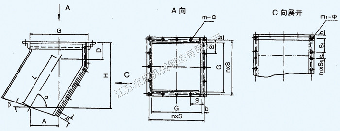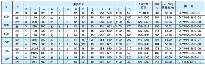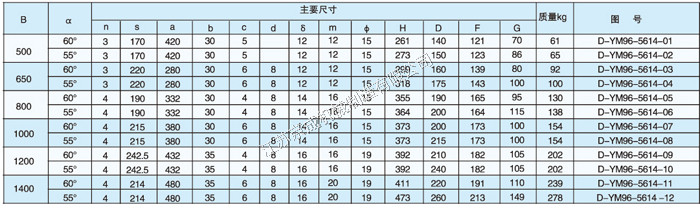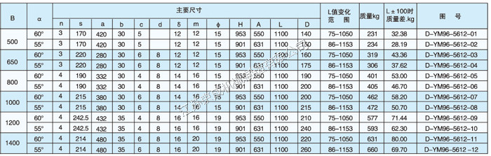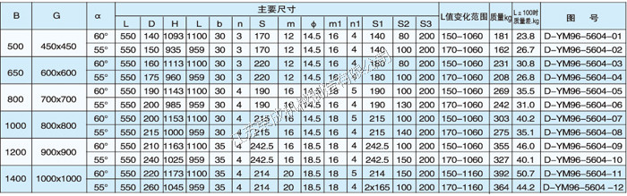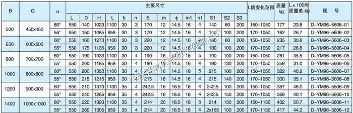 說明:1、表中尺寸和質(zhì)量系按L=550毫米、β=18°編制;2、圖中已包括上部聯(lián)接用緊固件;3、管體采用耐磨材料整體鑄造。