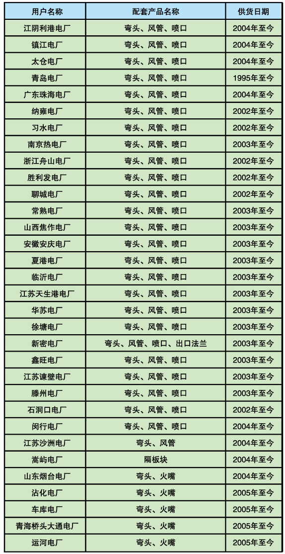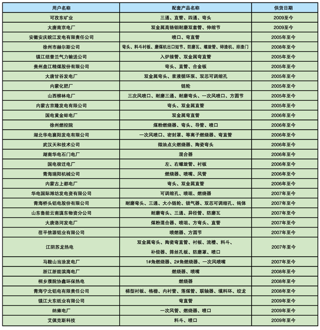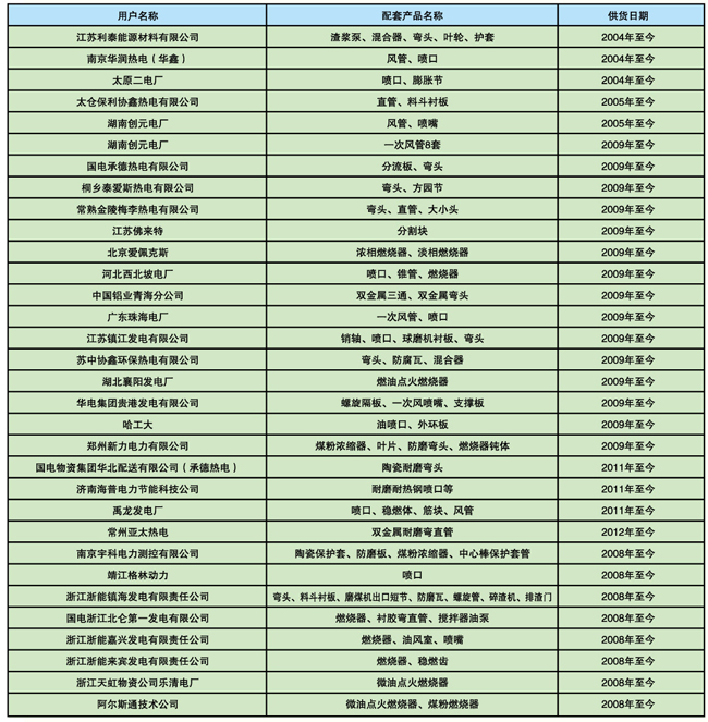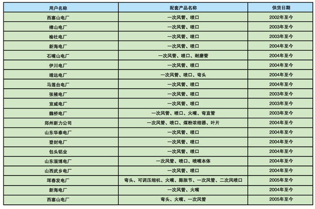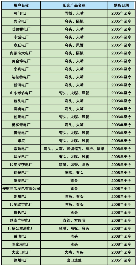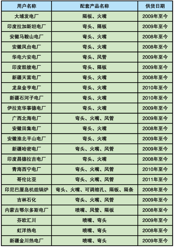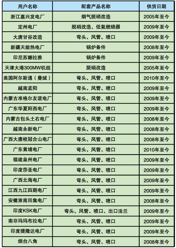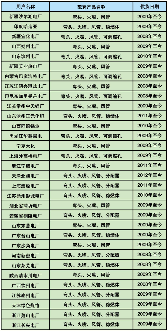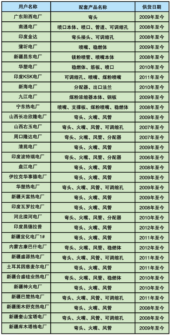 上海鍋爐廠配套項(xiàng)目的產(chǎn)品業(yè)績(jī)