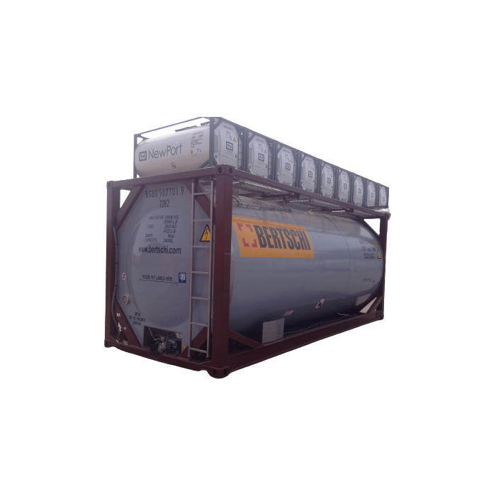 用于裝運(yùn)酒類(lèi)、油類(lèi)、液體食品、化學(xué)藥品等液體貨物的集裝箱。目前,集團(tuán)生產(chǎn)的罐式集裝箱品類(lèi)有:不銹鋼罐式集裝箱、水泥箱、硫酸箱,瀝青箱等。